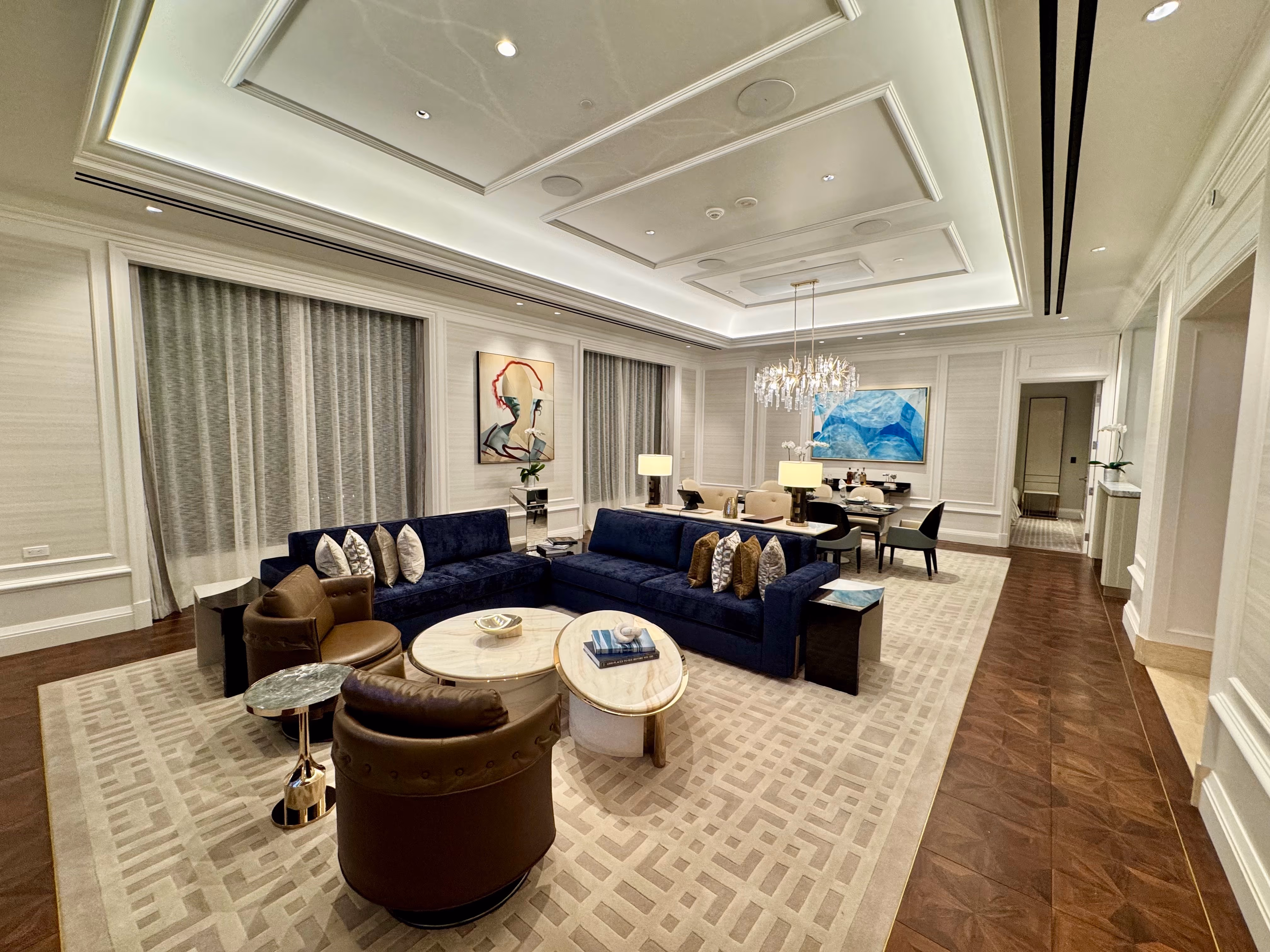 TCC Carpets crafted bespoke floor coverings for the 68th and 69th floor hallways and suites, delivering refined elegance at the tower's most exclusive levels.